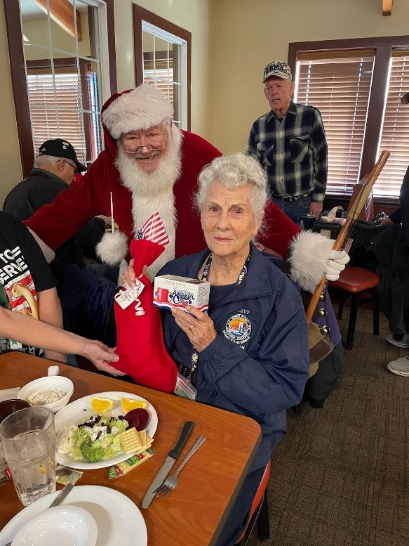 Santa visits a Veteran during the annual Christmas Breakfast.